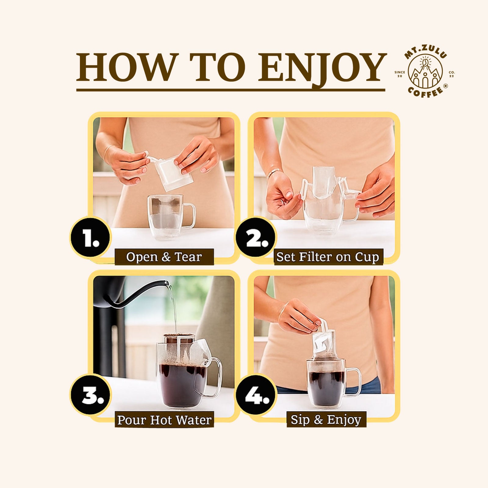 Perfecto para degustar, regalar, viajar, usar en la oficina o descubrir su nueva variedad favorita de Mt. Zulu.